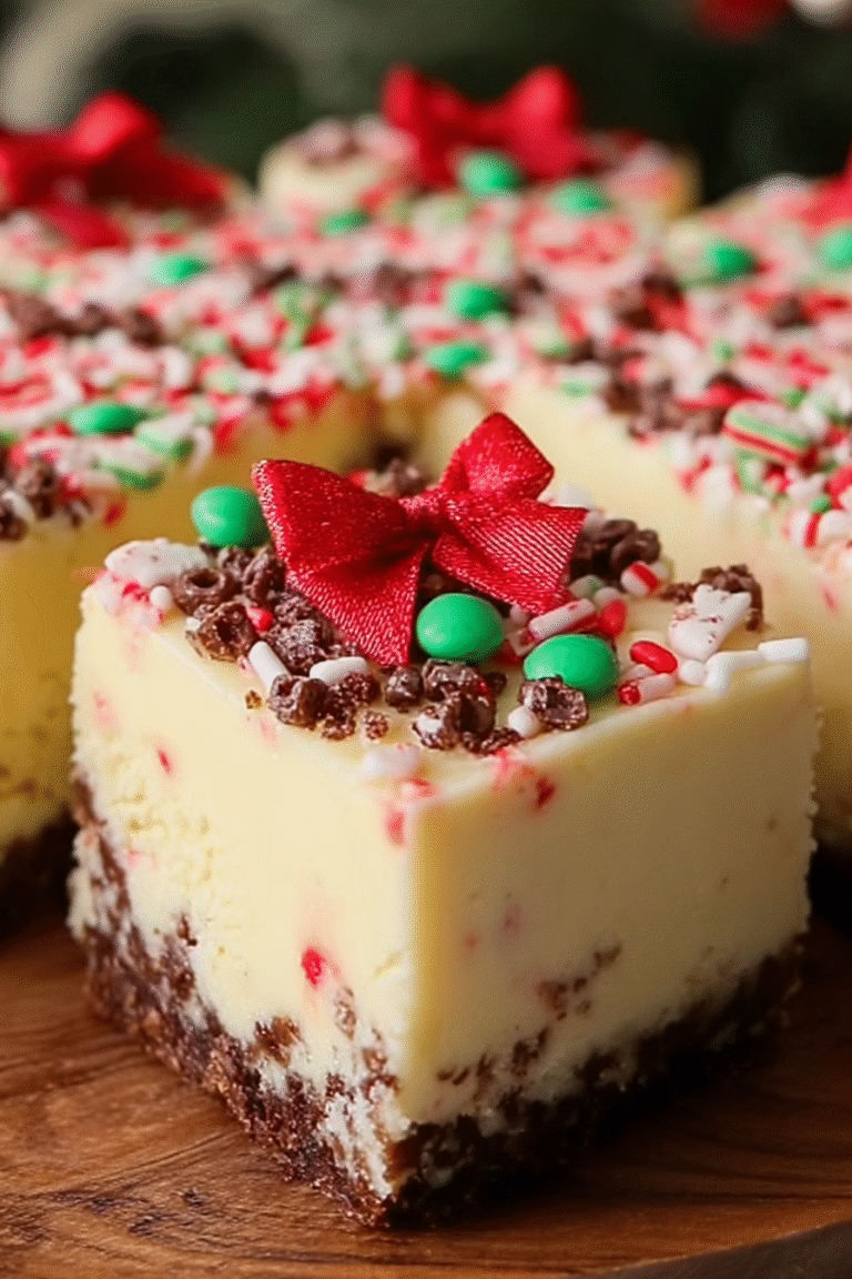 • Adorned with colorful sprinkles, this cheesecake is a show-stopping centerpiece for any holiday table.