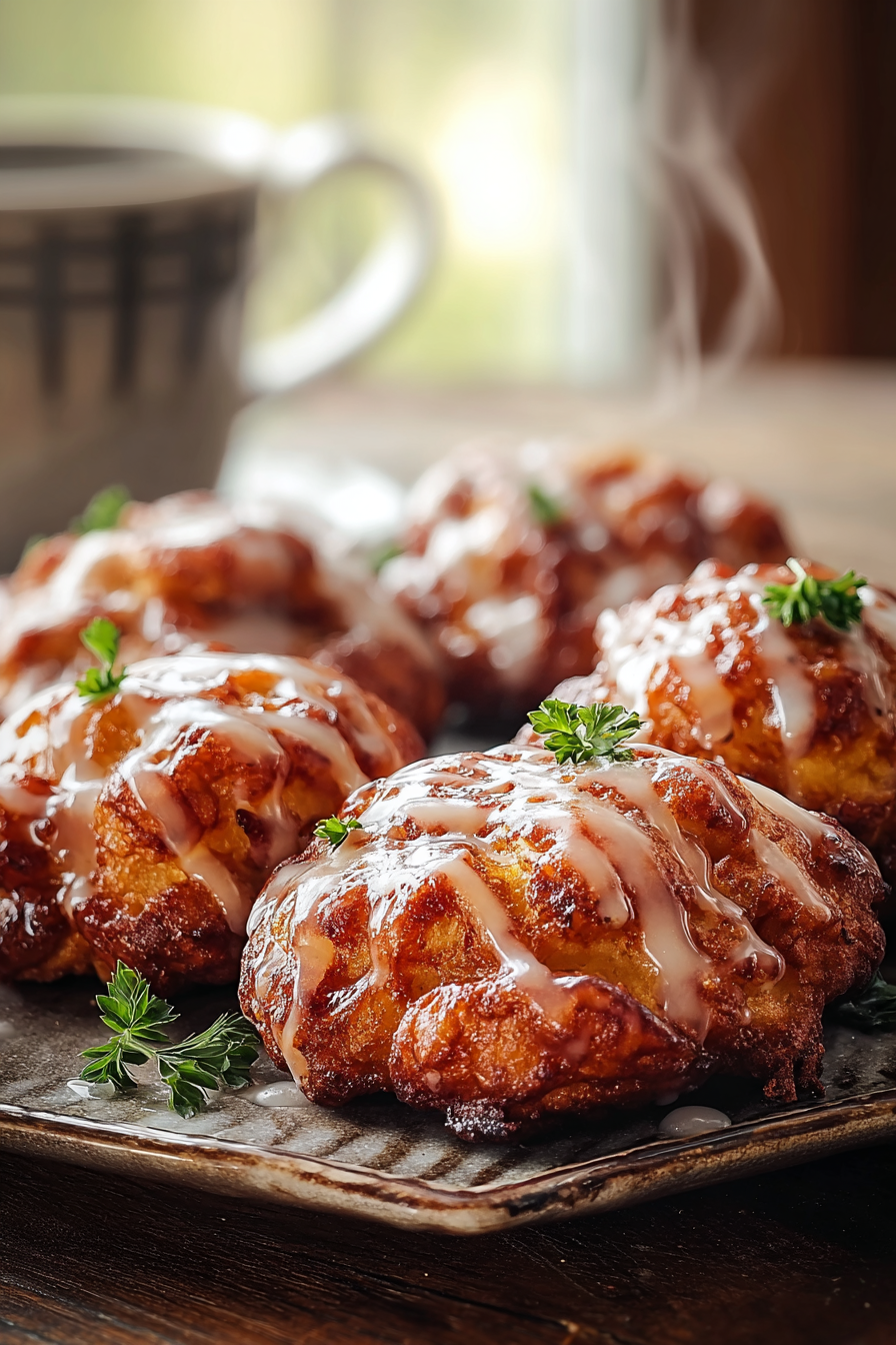 9. **Drizzle and Enjoy: ** Once the fritters are completely cool, drizzle them generously with the glaze. Let the glaze set for a few minutes before serving.