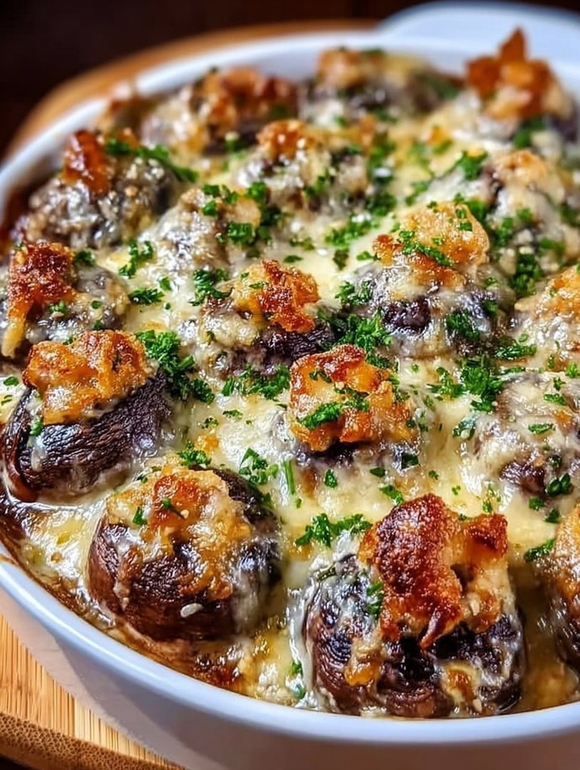 The aroma of earthy mushrooms mingling with creamy cheese, baked to golden-brown perfection, is enough to make anyone’s stomach rumble. It’s a comforting hug in a dish, perfect for chasing away the blues.
