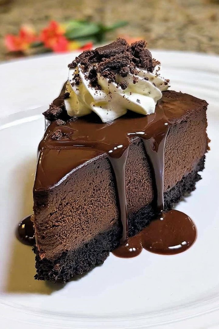 This isn’t just a dessert; it’s an experience. Every element, from the rich, dark chocolate to the velvety cream cheese, is carefully balanced to create the ultimate indulgence. Whether you’re celebrating a special occasion, hosting a dinner party, or simply treating yourself, this cheesecake is sure to impress. It’s the kind of dessert that lingers in your memory long after the last bite, tempting you to make it again and again.