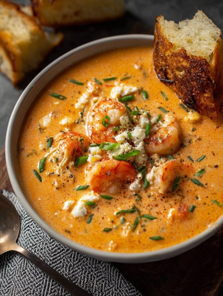 Delicious crab and shrimp seafood bisque recipe with detailed instructions and nutritional information.