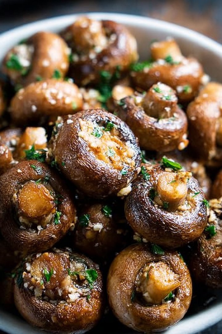 Delicious garlicky oven roasted mushrooms recipe with detailed instructions and nutritional information.