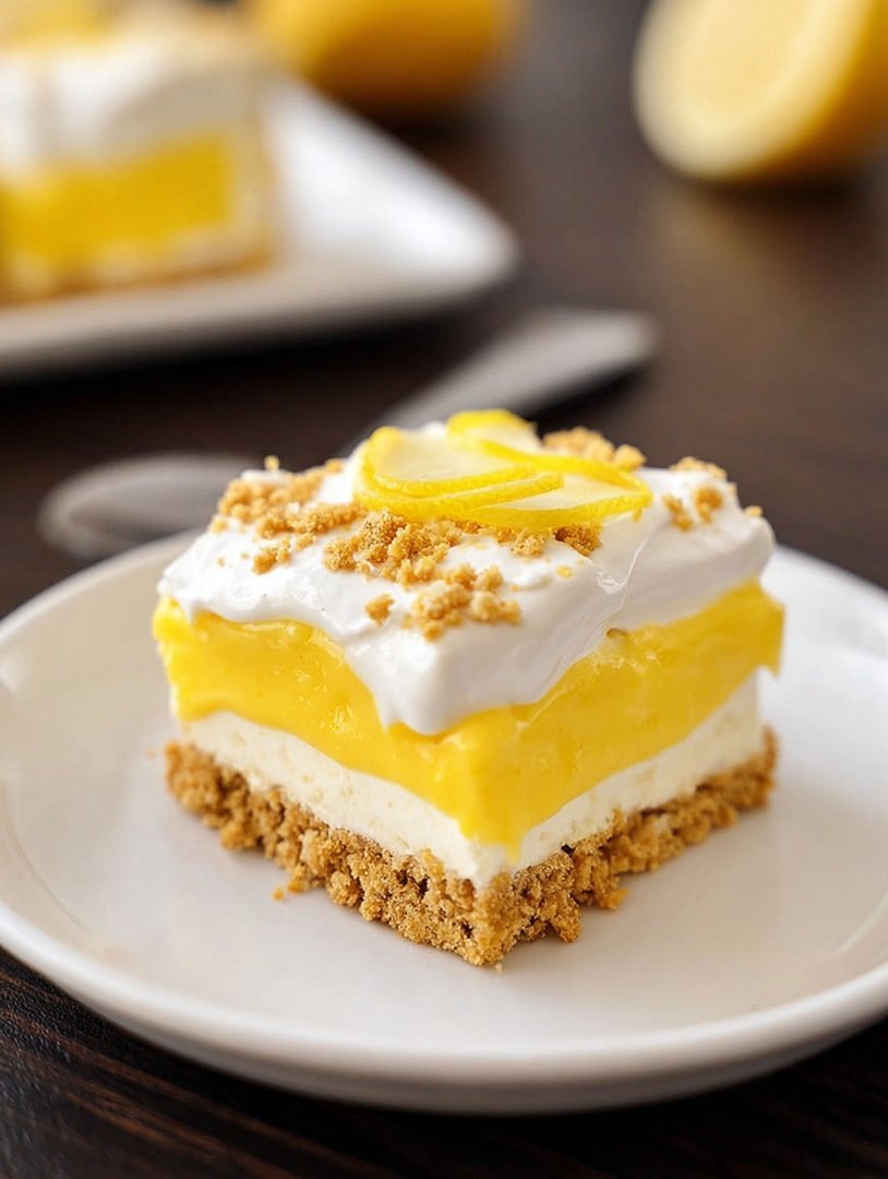 - Step 5: Spread the remaining half of the whipped topping over the lemon filling. Cover the dish tightly with plastic wrap and refrigerate for a minimum of 4 hours, or preferably overnight, before slicing and serving.