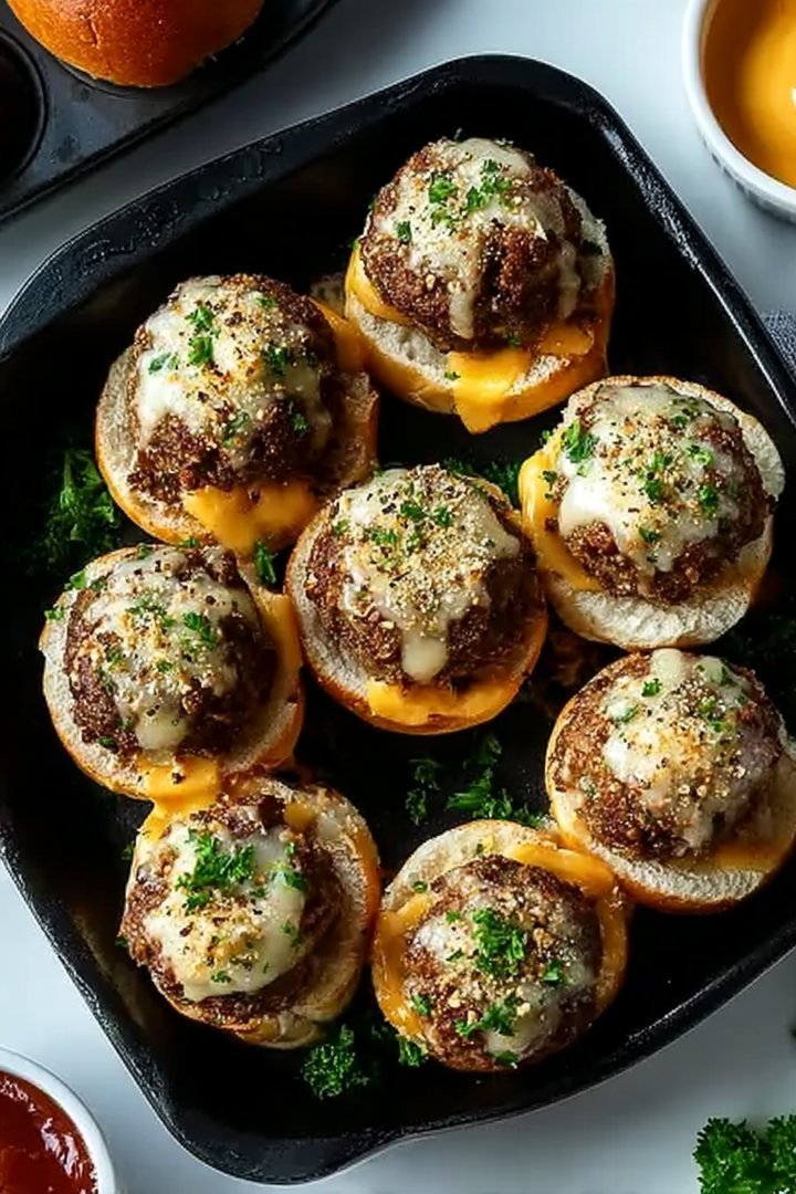 Once your **Irresistible Garlic Parmesan Cheeseburger Bombs** are baked to golden perfection, it’s time to unleash them upon the world! Serve them hot and fresh, and watch as they disappear in a flurry of cheesy, meaty bliss.