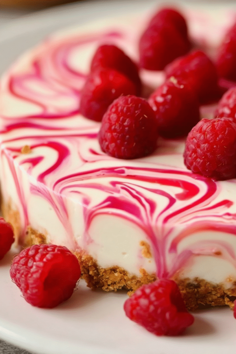 Delicious no-bake raspberry cheesecake recipe with detailed instructions and nutritional information.