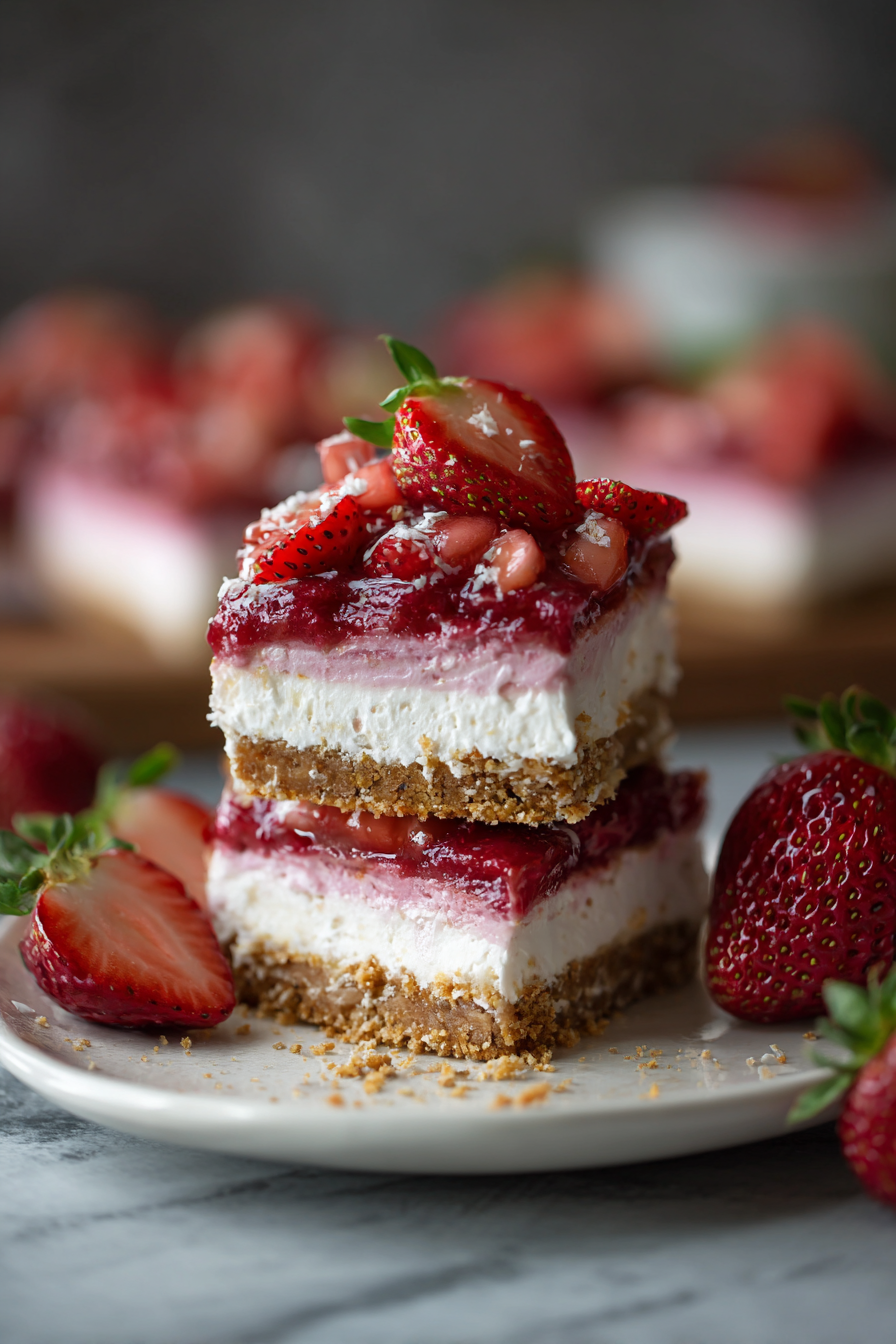 Delicious no-bake strawberry cheesecake bars recipe with detailed instructions and nutritional information.