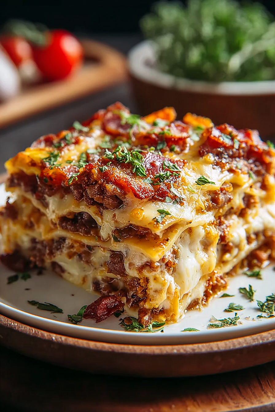 Parmesan Garlic Turkey Beef bacon Cheeseburger Lasagna Recipe