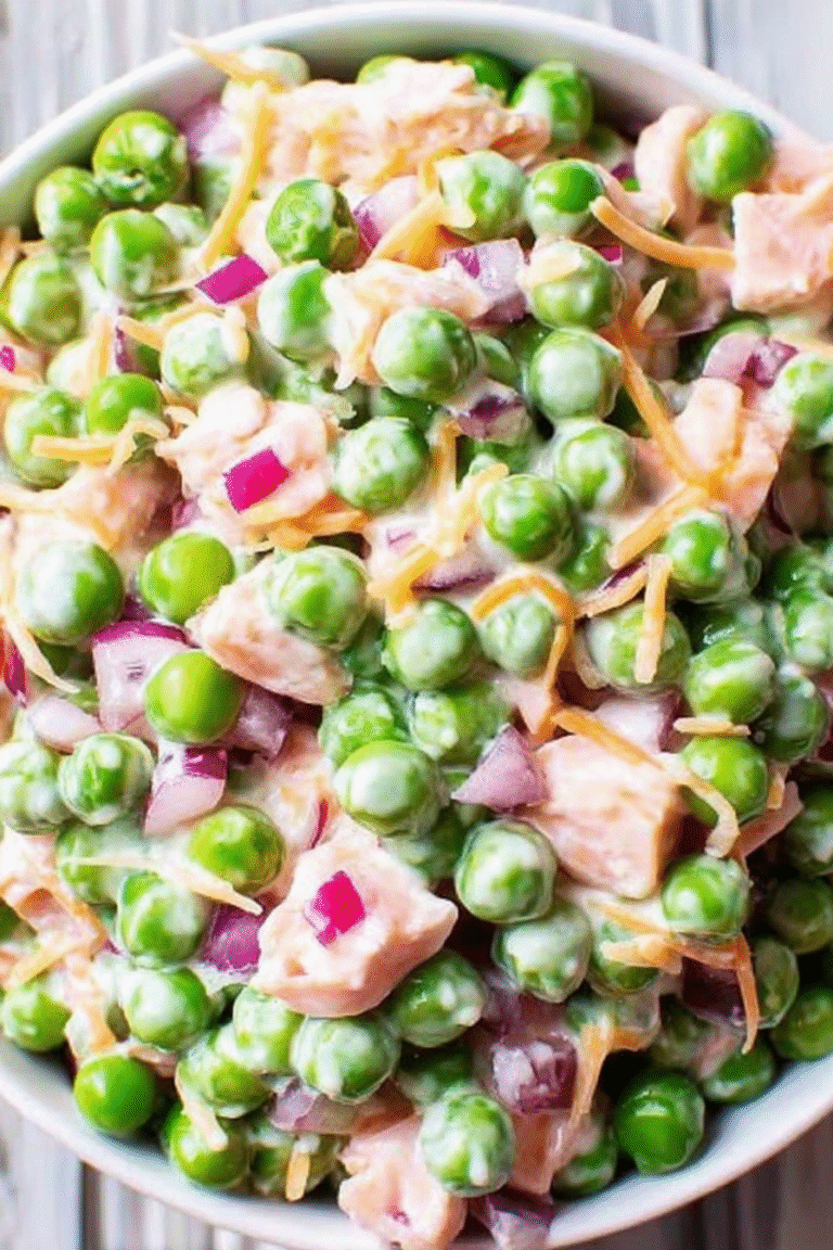 Absolutely! In fact, making this type of salad ahead of time is almost encouraged. The flavors meld together beautifully as it sits in the fridge, allowing the dressing to fully coat the peas, red onions, and cheese. Just be sure to store it in an airtight container to prevent it from drying out. If you’re making it more than a few hours in advance, you might want to hold off on adding the optional crunchy topping (like sunflower seeds) until just before serving, so they don’t get soggy. This salad is a fantastic potluck or picnic option because of its make-ahead nature!