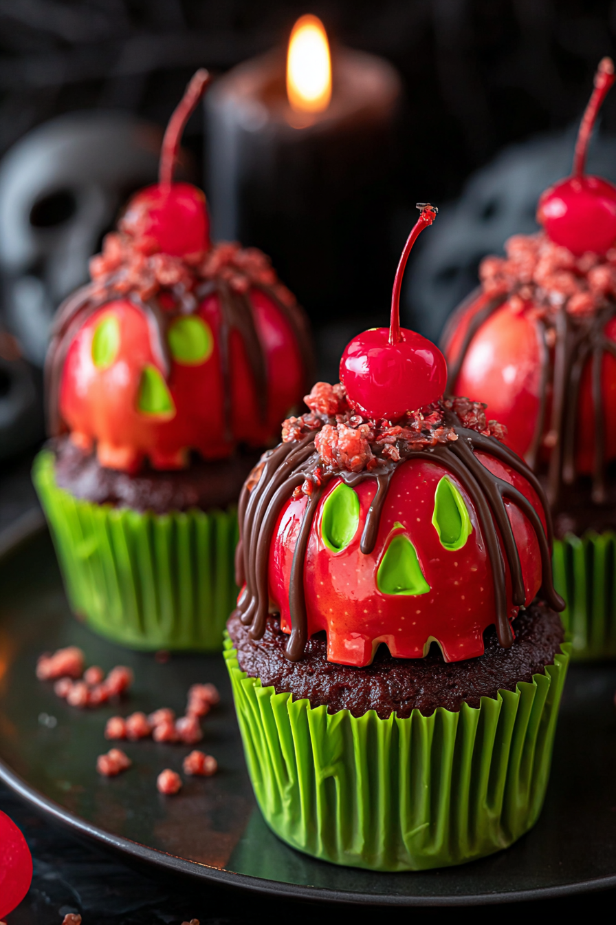 4. **Admire Your Work: ** Step back and admire your beautiful, spooky *Poison Apple Cupcakes*. You did it!
