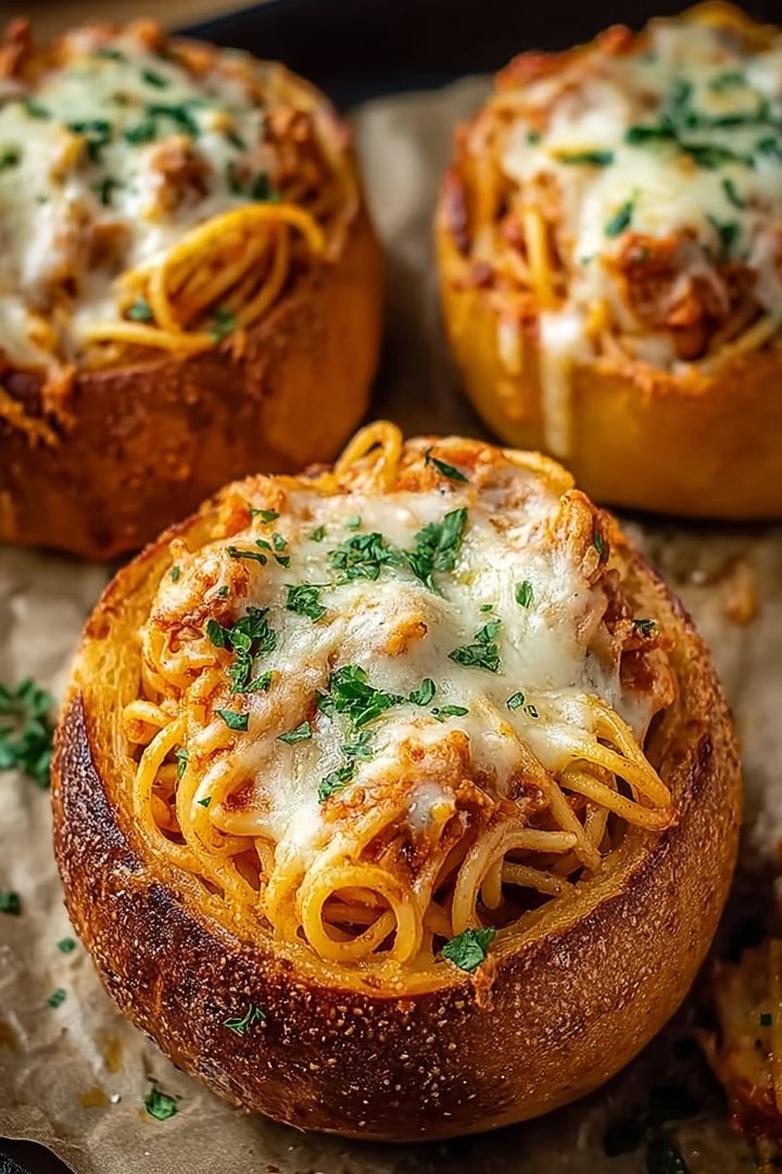 Got leftovers? Store the spaghetti and bread bowls separately to avoid soggy bread. Reheat the spaghetti in a pan or microwave, and crisp up the bread bowls in the oven or toaster oven for a perfect, next-day delight.