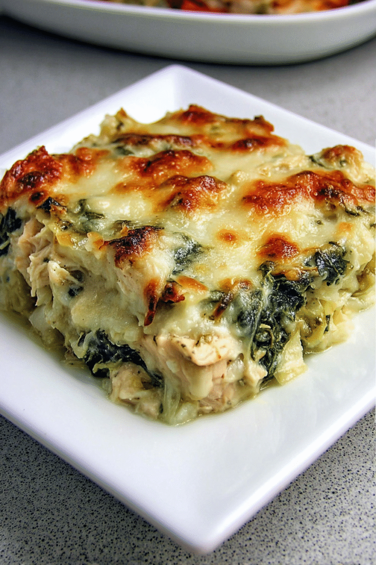 This Spinach Artichoke Chicken Casserole can be stored in the refrigerator for up to three days. To reheat, cover with foil and bake at 350°F (175°C) until warmed through. You can also microwave individual portions for a quick and easy meal.