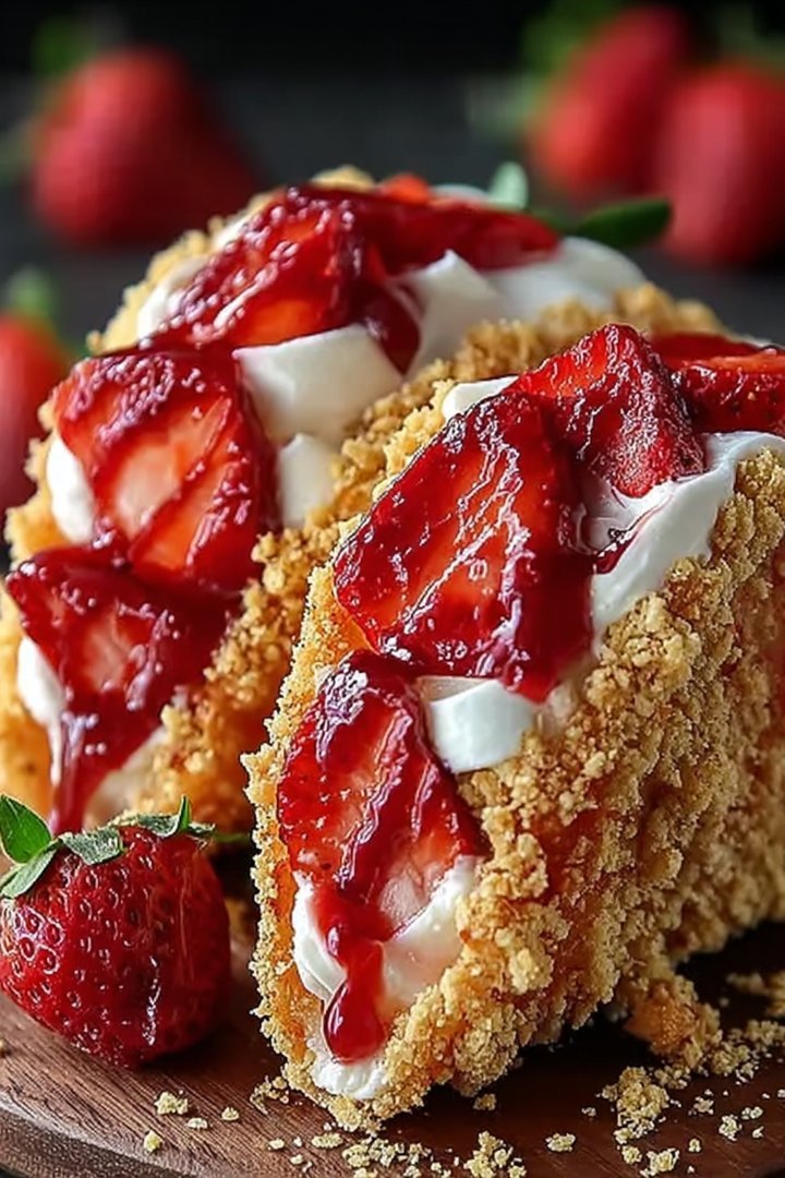 Picture this: a symphony of sweet, tangy strawberries dancing with the creamy richness of cheesecake, all snuggled inside a crunchy taco shell. It’s a flavor fiesta you won’t want to miss!