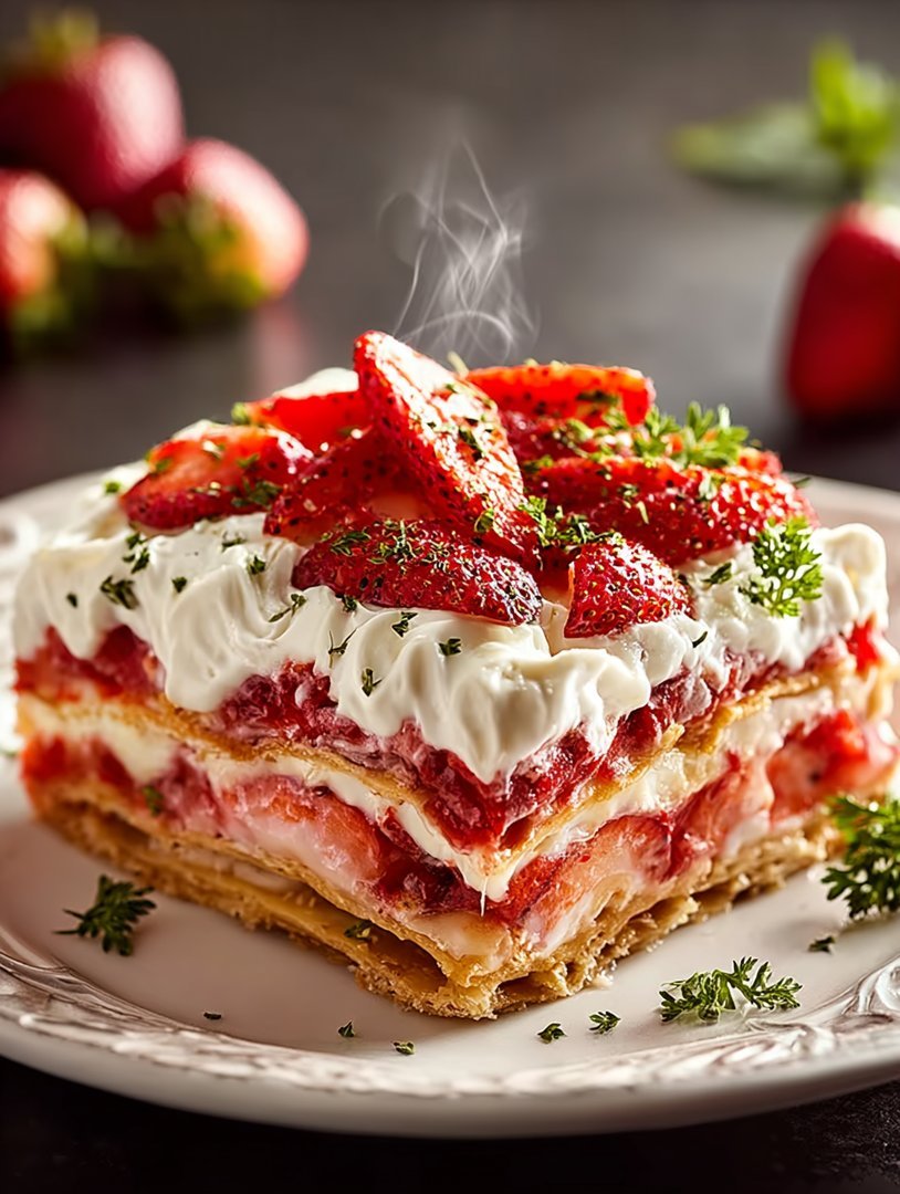 Imagine layers of sweet cream dancing with bursts of fresh, juicy strawberries, all nestled between delicate sheets of crispy, golden pastry. This Strawberry Lasagna is not just a dessert; it’s a symphony of textures and flavors that will make your taste buds sing!