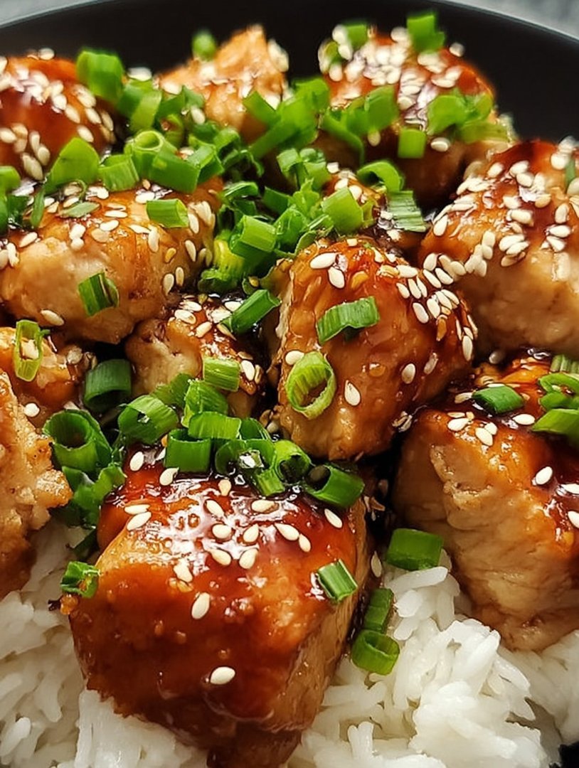 6. Step 6: Serve the teriyaki chicken hot over rice, garnished with sesame seeds and chopped green onions if desired.