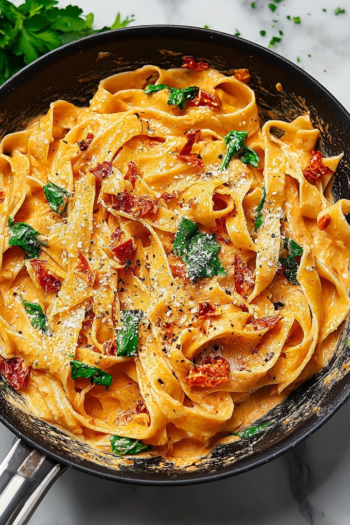 - If the sauce becomes too thick, add a little pasta water to reach your desired consistency, a chef’s secret for a flawlessly creamy Vegan Creamy Sun Dried Tomato Pasta Recipe.